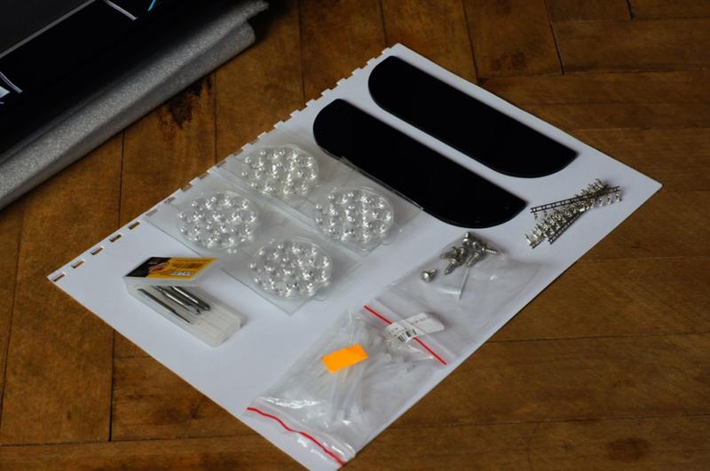 Радиатор с установленными сборками, стяжки, запасные контакты в разъёмы, оптика, метчики №1,2,3 для нарезания 3мм резьбы для установки контроллера и т.п. Заглушки, шурупы для крепления заглушек, рассеиватель сатин односторонний (внешняя сторона - гладкая - можно протирать сколько угодно)