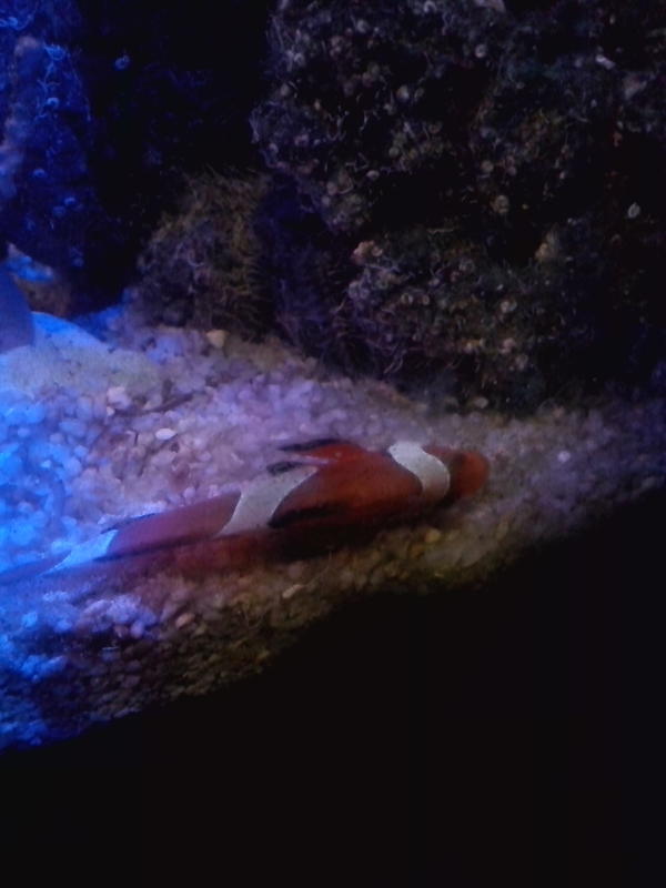 После суток карантина, клоуну стало лучше-принял свой естественный окрас, покормил, он поплавал за едой, но потом всеравно улегся набок.  Сделал ему подмену, посмотрим что будет завтра! Надеюсь, что все обойдется!
