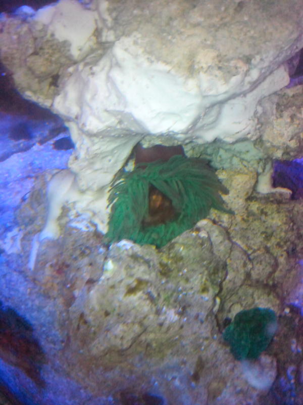 Актиния открыла рот в диаметре сантиметра 2, выпускает коричневую хрень.