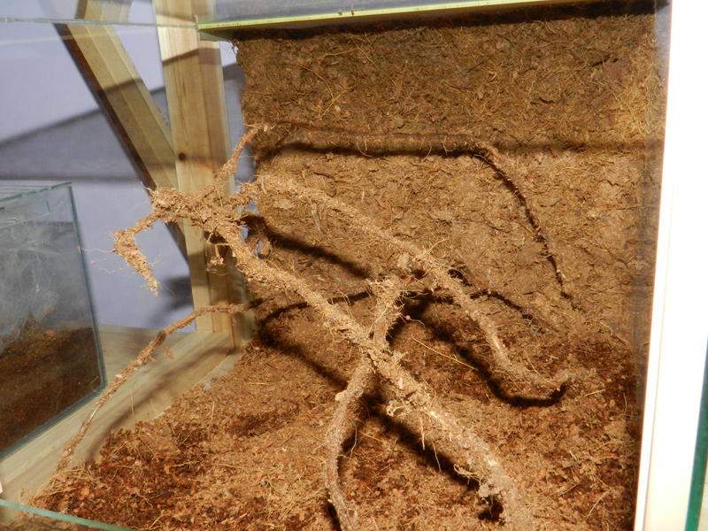Есть еще вариант строительной пеной сформировать стенку, можно сделать интересный рельеф, и обклеить субстратом. Хотя у некоторых пауки начинают грызть пену.