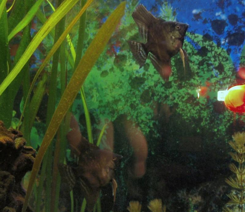 Пожскажите пожалуйста по этим 2 парам скалярок. Кто есть кто? А то я их глазами уже не первый день дырявлю, а понять не могу. Они мне все одного пола, какого не знаю. И если сможете по фото определит примерный возраст, то пожалуйста. Покупал вместе, черные были поменьше от золотых, но очень бысто их догнали и сейчас одного размера. У меня они уже месяц. Просто интересно, когда можно будет понаблюдать нерест.