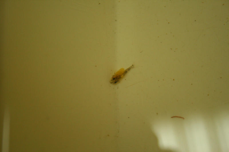 Сегодня, как делаю каждый день, посмотрел что творится в пещерках у L-201 и L-340. Накануне несколько дней подряд делал подмены дисстилятом по 1\3 объёма и играл температурой - надеялся увидеть отнерестившихся в результате этого сомов. Но вместо этого обнаружил в одной из пещерок у L-201 достаточно продвинутую, в смысле развития, личинку (видимо снова нерест был до моих манипуляций с водой). Вытряхнул шесть личинок - не уверен что всех, т.к. самца вытряхнуть не удалось и возможно кто то остался. Фото не очень получилось, но представление о личинках можно получить - интересно сколько им времени? Подскажите пожалуйста.