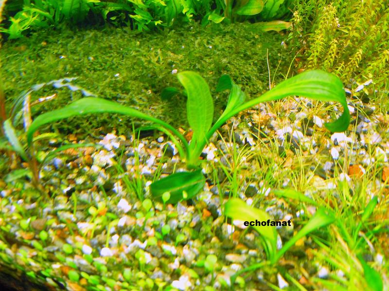 Растение просто супер,годится даже для маленьких аквариумов,высота маточного куста примерно 8-9см.,лист очень-очень жесткий,рост очень-очень медленный  .