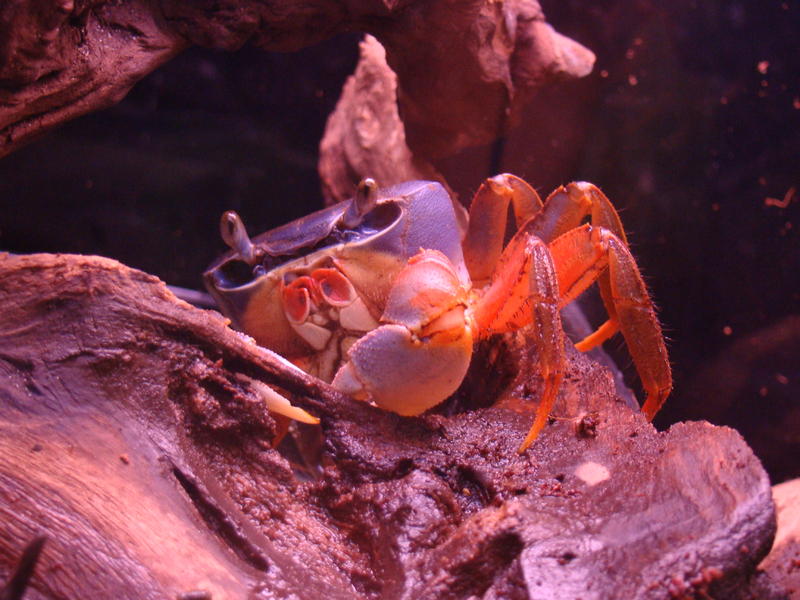 Во время совместного проживания моего краба с рыбами в банке была зона с глубиной в 1-2см, на которую последние систематически заплывали. Какая-то у рыб страсть плавать на мелководье, что подтверждают караси живущие в прудике у меня в саду, которые любят сидеть в месте с низким уровнем воды, вызывая тем самым нездоровый интерес у соседских кошек и представителей врановых Не знаю, приемлемо ли к крабам понятие "приобретённый инстинкт", но вполне возможно первые случаи не гуманного обращения с рыбами произошло именно там (как не грызануть, если оно шарится у твоих ног), а уж потом и плавающие рыбы в глубокой воде стали восприниматься крабом как объект охоты. Хотя сие лишь допущение. Но факт остаётся фактом - на моих глазах краба, сидящий на 30 см глубине, цапнул за голову подплывшего к нему рыбаса и частично употребил в пищу.