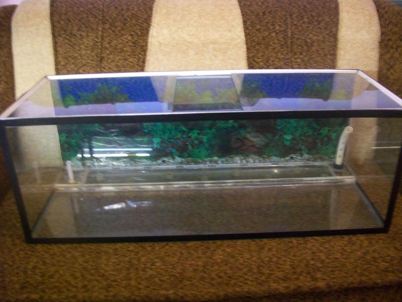 Продам 2 аквариума 90x34x33h(100л), стекло 4мм, двойное дно, стяжка, 2 сдвижные крышки на рёбрах жёсткости из пластикового уголка, вклеена часть фальшдна - она же что-то типа колокола под грунтом (на случай подачи СО2),задний фон. 160грн/шт.