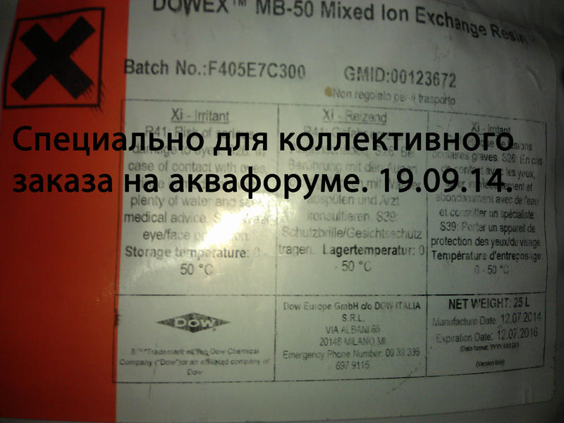 Re: Коллективный заказ ионообменной смолы Dow DOWEX MB-50 ===www.aquaforum.ua===
