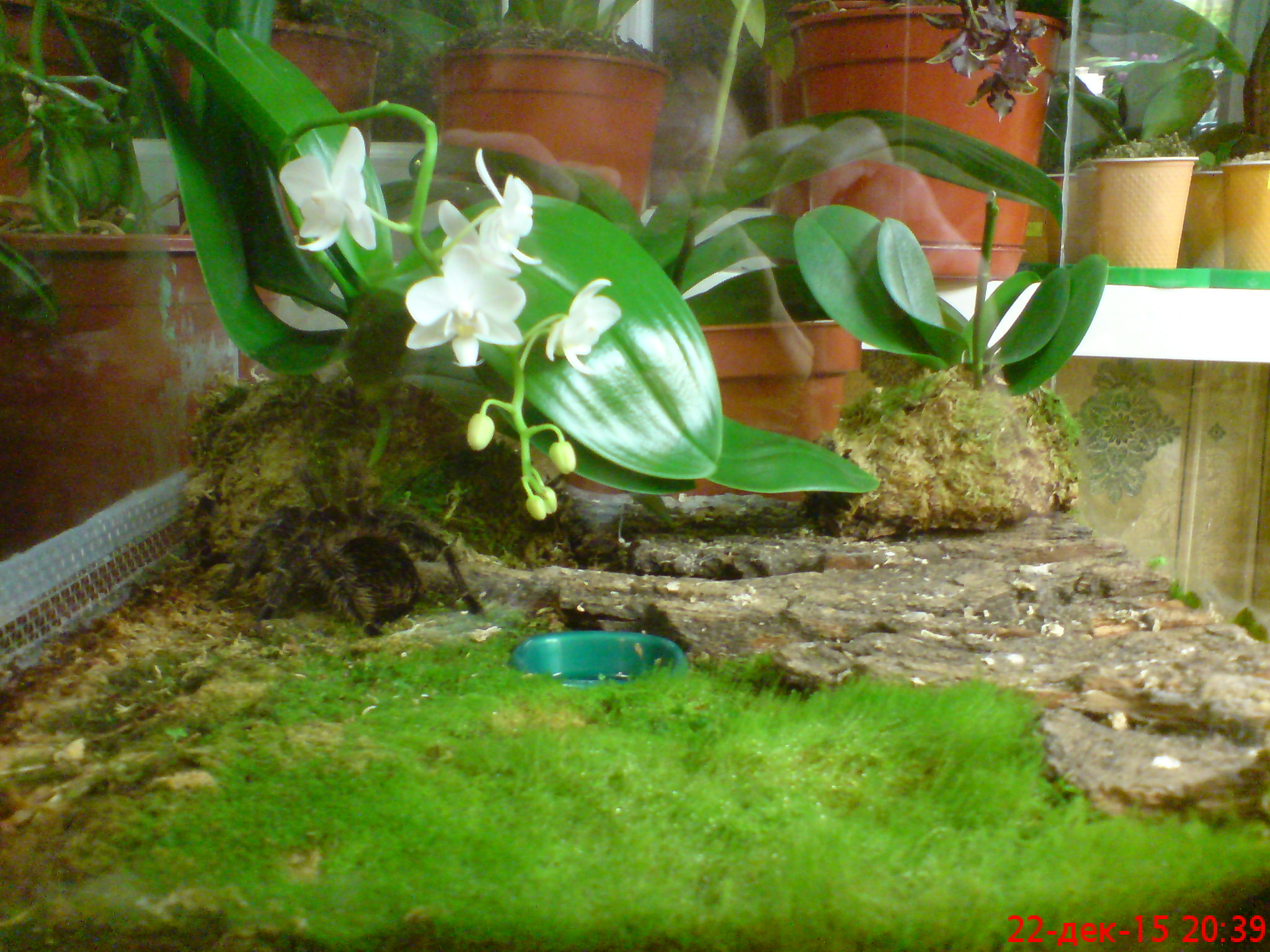 Террариум для паука Lasiodora parahybana с живым мхом и орхидеями