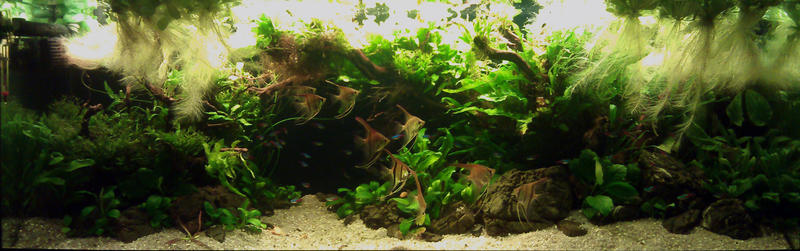 коряжки ушли чуть дальше под заднюю стенку, т.к. скаляриям уже негде плавать было.