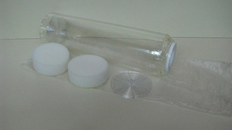 Корпус под засыпку (фото 2 и 3) цена-105 грн. Добавив к корпусу фитинги ,кран и трубку то получится комплект для полной деминерализация осмолята.