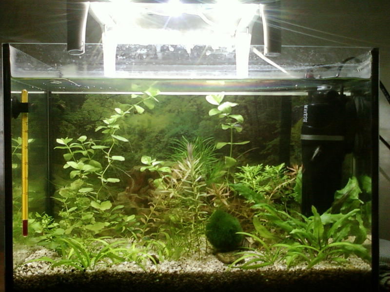 при такой длине аквы -единственным оптимальным вариантом оставались PL компакты - но на практике (во второй банке ( 24л чистыми но высотой 25см + те же 900Lm возможно подсевшие -на лампе osram dulux PL-s 11w 840 растения растут медленно и стенки цветут прилично/ играл с продолжительностью дня-не то все равно... 865 -спасает ситуацию. но пока все под нее перестроилось(растения) и т.д -но пришел к выводу что без углекислоты-840 спектр низковат...... да и эксперименты со светом тоже деньги... решил старую забрать банку на работу. дальше "играть", а новую домой уже оформить с LED