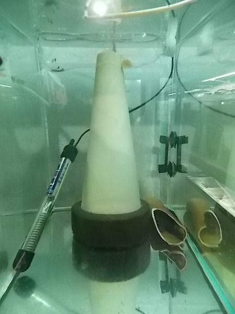 В последний день 2014 года решил всех вас повеселить и показать оригинальный инкубатор икры L-184. Его, впрочем, также успешно применяю и для инкубации икры других видов. Одни мальки уже вывелись, другие (в икре) ждут своей очереди. Объем аквариума - 60 л. ppm - 96. pH - 6,3. Один самец и две самки. Одна отнерестилась, полезла вторая, выбросила икру. Икру поднял вверх на инкубацию. На следующий день отнерестилась другая. Никаких проблем, все, как у обычных анциструсов, нерест один раз в месяц.
