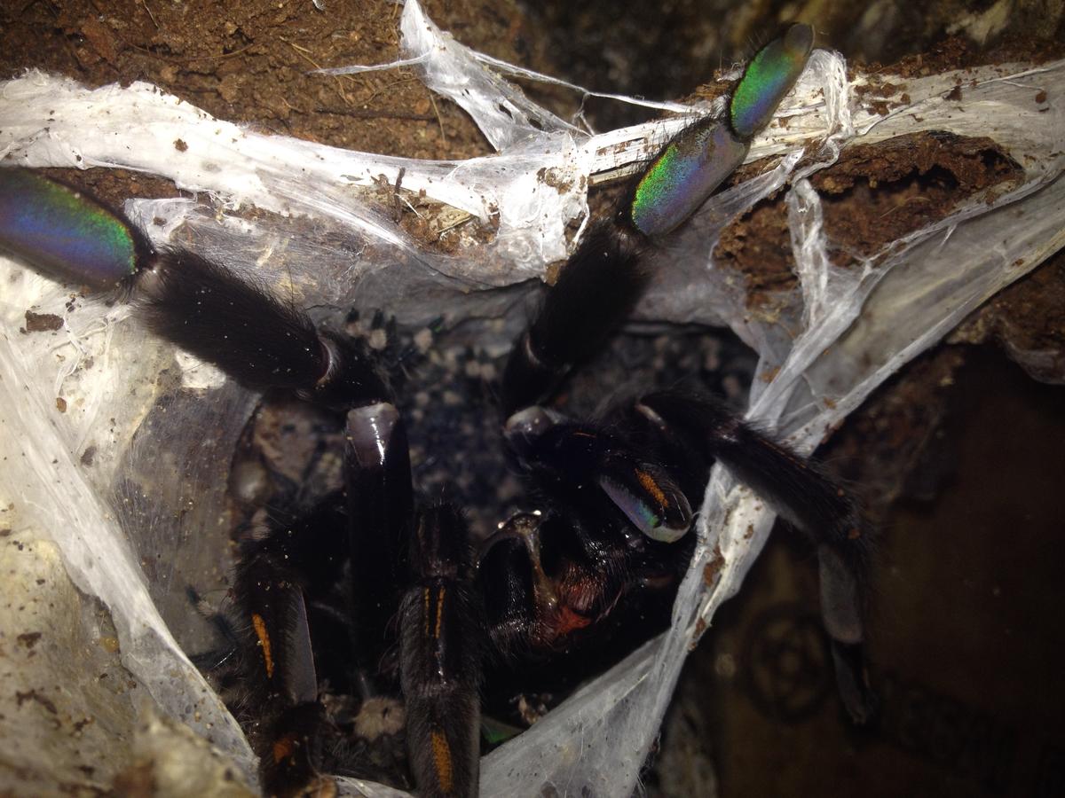 Удалось получить потомство от Chromatopelma Cyaneopubescens!