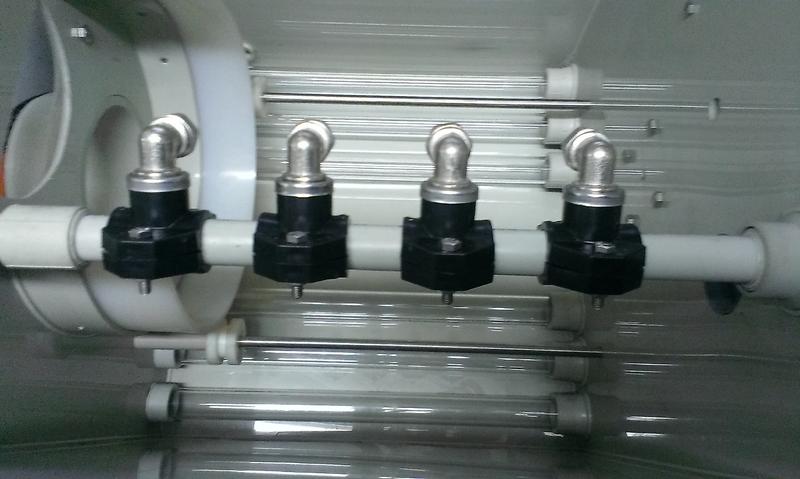 в качестве опции -- Ультрафиолет встроенный, 90 Вт.(6 кварцевых колб, 6 бактерицидных ламп по 15 Вт.+3 електронных балласта 2х18).