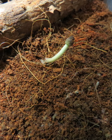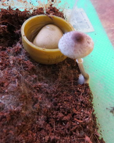 Тоже не столь далеко от поилки вырос гриб  Непонятно откуда взялись споры, то ли из коряжки, то ли из субстрата.