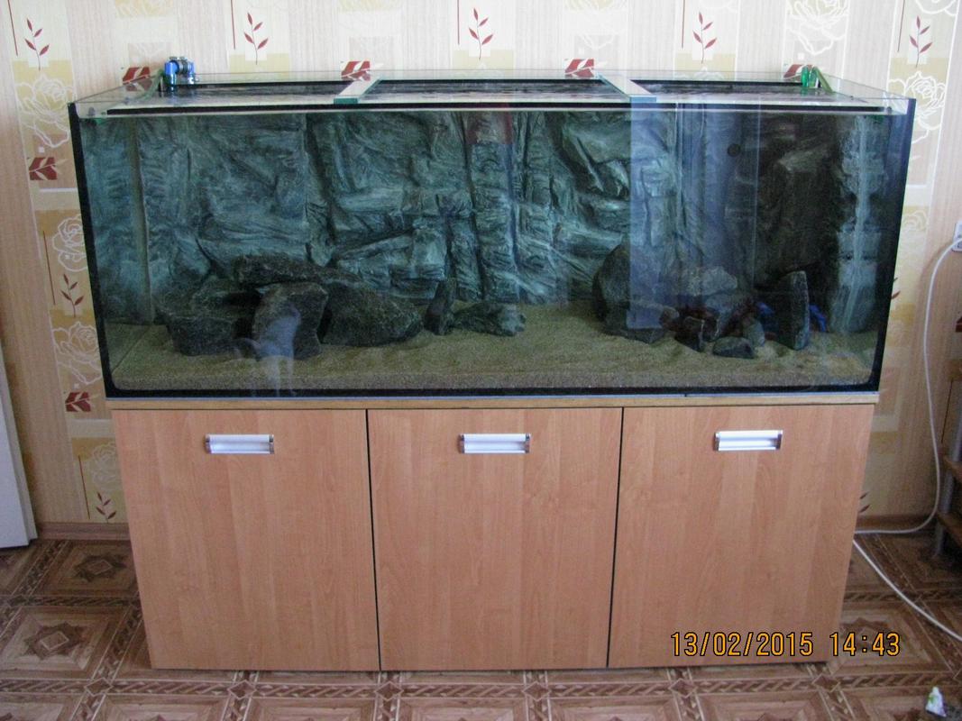 Доработки ещё будут , типа уголки на торцы стёкол , другие булыги , всовывание аквариума в тумбу , ну и по ходу что ещё всплывёт .