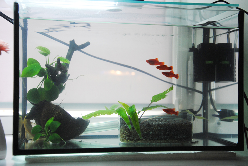 Сейчас малявочки находятся в двух аквариумах, в одном живут Гуппи 6шт и мелкий анциструс 3см.