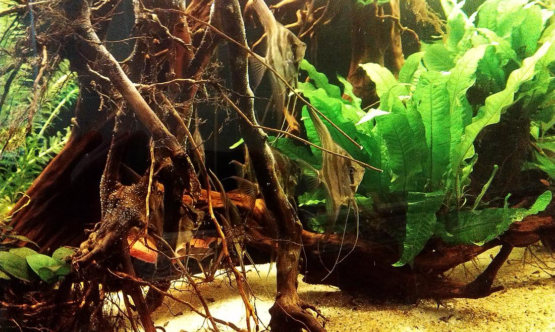 За короткое время произошли маленькие изменения.В качестве буферной рыбы приобрёл нанностомусов-40 шт.,что немного раскрепостило Альтумов,уже не такие пугливые а может просто обжились на новом месте т.к в принципе этих 40 харацинок не особо видно в 500 л.Растения в мягкой воде стали заметно лучше расти, несмотря на слабое освещение-0.2 вт/л.