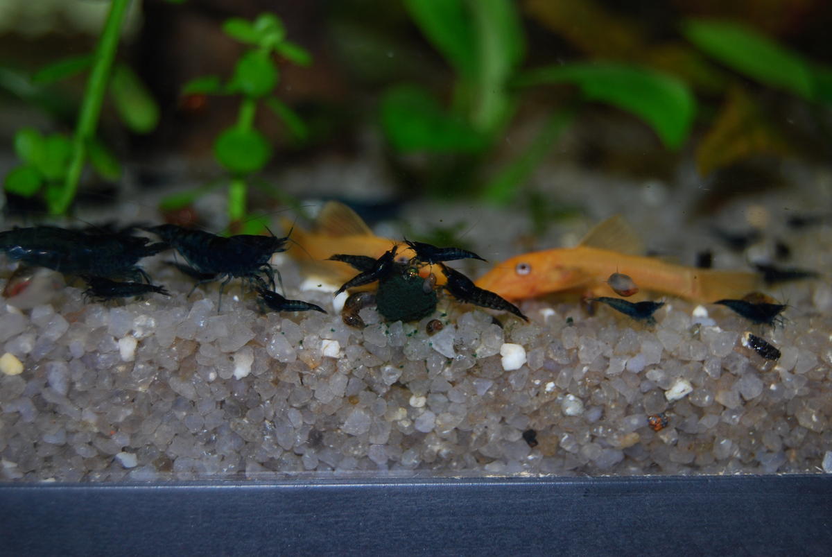 И мне досталась. Креветки восприняли спирулину без энтузиазма, зато мелочь ансцитруса и стурисомы размели быстро.