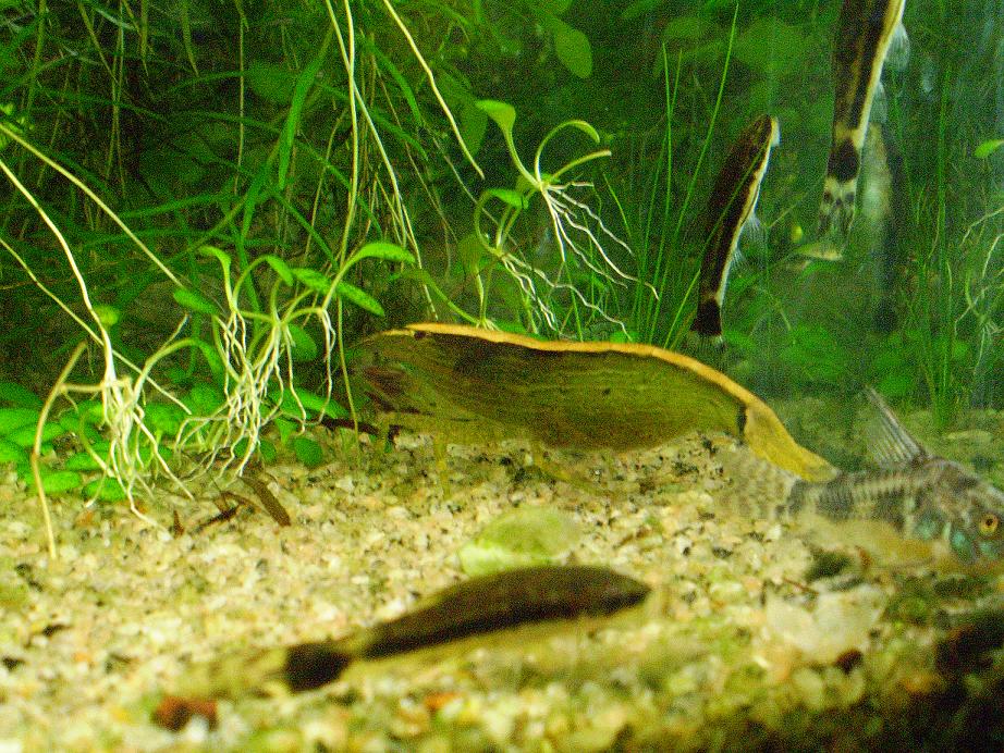 Нет, шкурок не было т.к. я тщательно сифонила все дно перед высакой новых растений....Нус, буду ждать когда подростут и перестанут прятаться  . Еще хочу со временем банановых купить,таких как у вас  ...