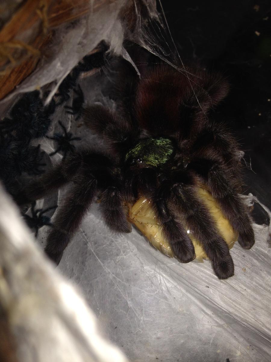 Паучата очень активно питались и быстро росли. На данный момент выходят в л4.