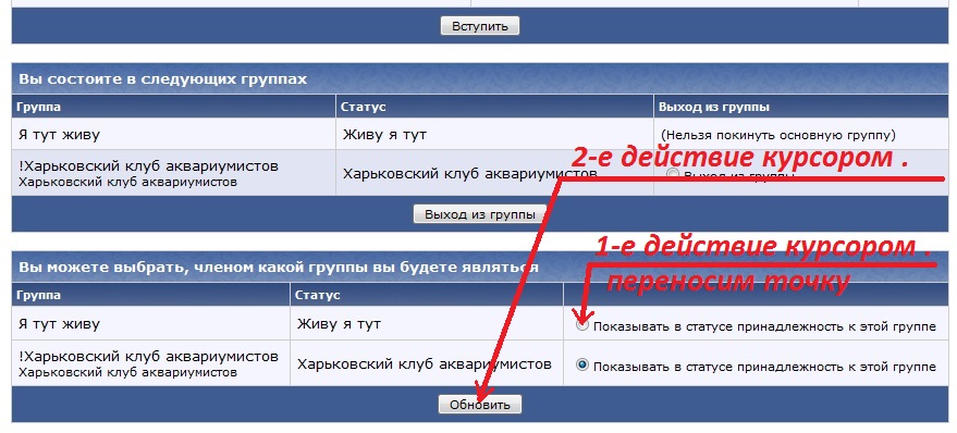 Да никакого . Чтоб убрать ее нужно : 1) "Стукнуть" курсором по опции "Мой кабинет" . 2) Когда откроется , в списке справа по опции - " Членство в группах " . 3) Когда откроется - опуститься в самый низ страницы и произвести два действия как на фото ниже . У себя эту гадость в подписи уже убрал и не только я ... Спасибо А.Бешлеге ! Наши "горе руководители" - перед тем кач что-то сделать , даже недумают , что может получиться . Можно ведь было сначала решить вопрос с админом , а потом уже без хамства создать комфортную обстановку на любимом форуме Харьковчан . Оффтоп