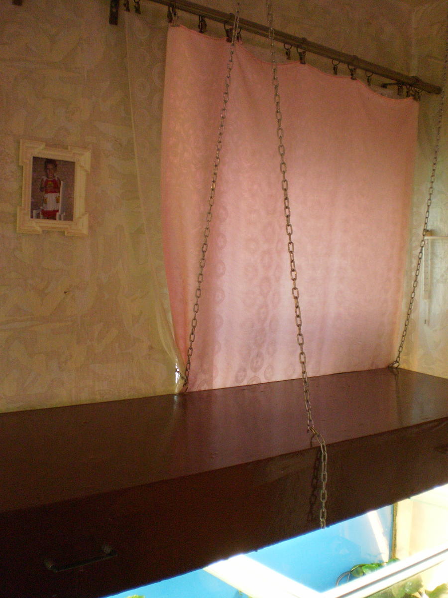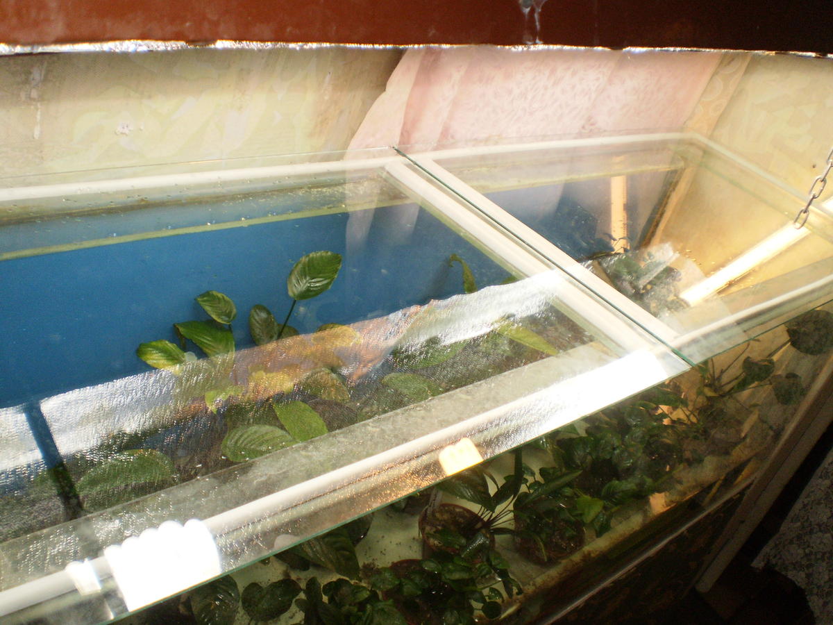 А прикол весь ребята в том,что раньше крышка лежала просто сверху аквариума(а она очень даже громоздкая),а теперь,для минимизации и удобства обслуживания,я её пришпандёрил на цепях над теплицей(вот это мне стоило немалых нервов).