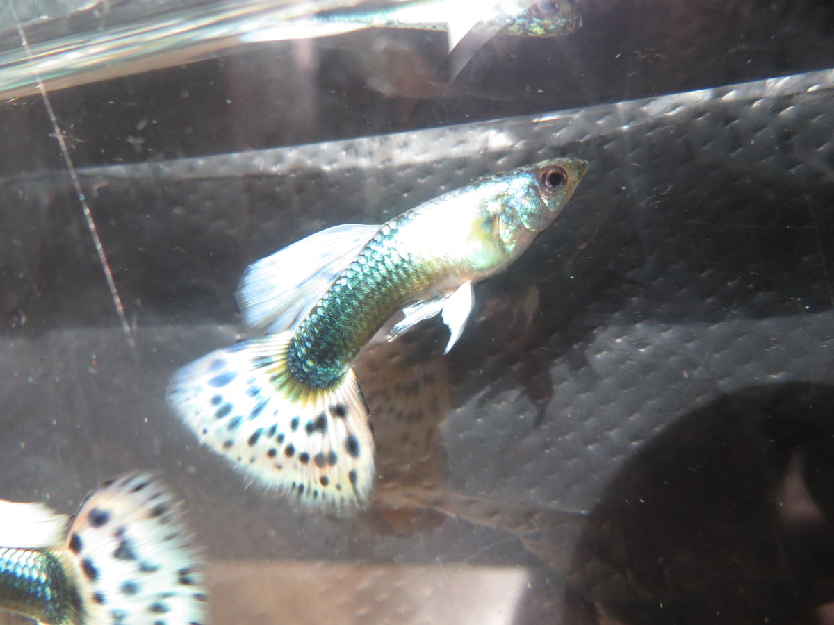 Крест самца гибрида эндлера Japan Blue на самку reticulata алая. Его братаны с золотой фоновой хуже смотрятся.