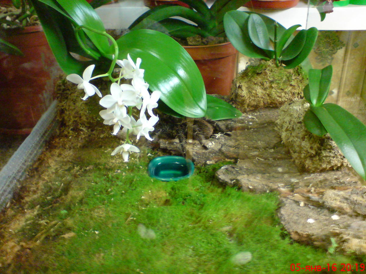 добавил еще одну орхидею минифаленопсис . мох разрастается паук тоже растет