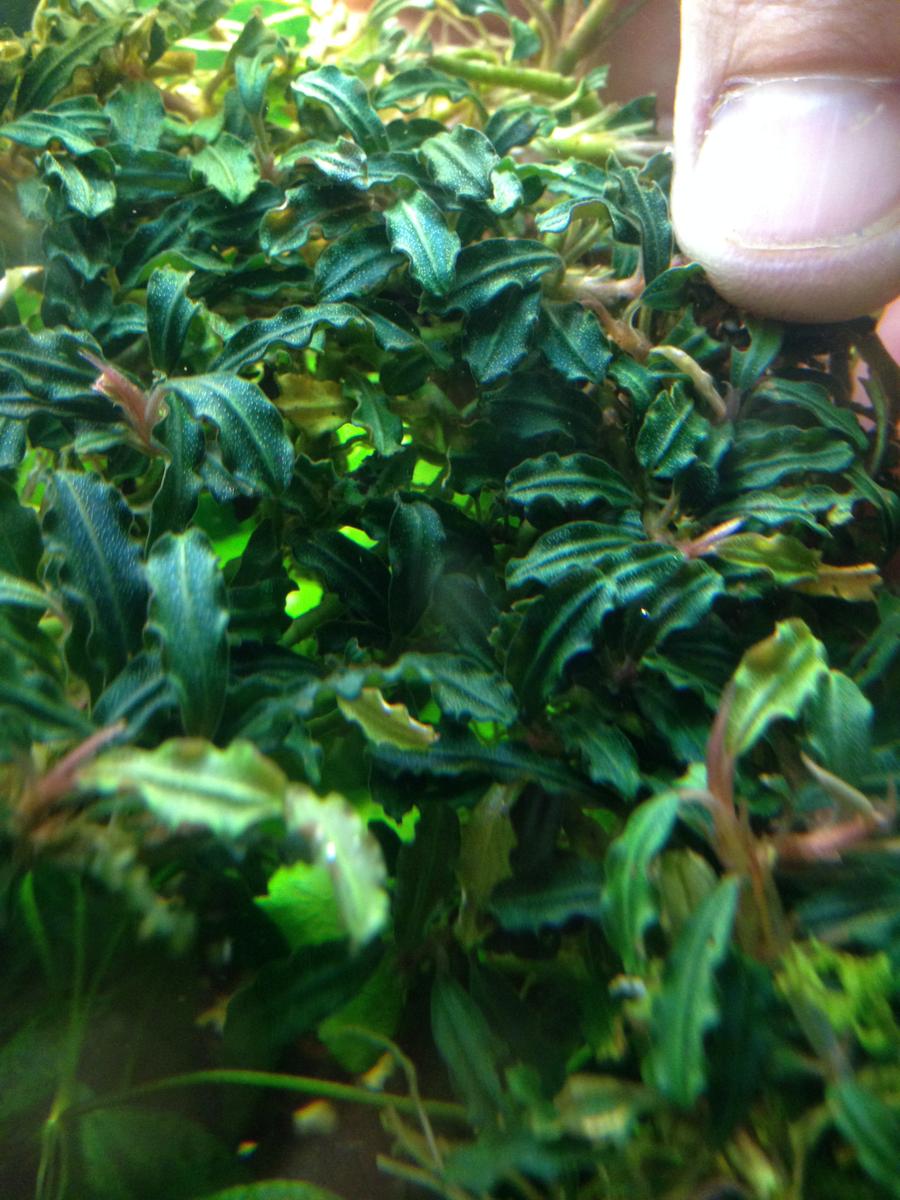 Ув. коллеги хочу вам представить Bucephalandra sp. Krivbass, Ulu Kapuas”. Растение с мелкими листьями, габитус похож на Mini Catherineae.