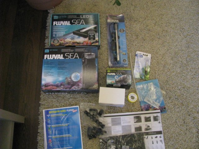 Доброго дня усім мореманам і з наступаючими вас святами, приймайте мене в когорту мореманів, десь місяць вивчення питання, мук і вагань привели мене до придбання даного комплекту морського акваріума, (Hagen Fluval SEA Reef M-40, 53 л), свідомо розумію що досягти балансу в меншій банці і без сампу в тумбі буде складно, але можливості і певні обставине не дозволяли акваріум більших обємів, впринципі я думаю стартувати можна і треба з невеличкого акваріуму а там коли у всьому розберусь можливо і варіанти появляться на інший обєм, враховуючи, що я суто теоретик прошу вашої допомоги. Акваріум придбав б.у тут на форумі в людини з Харкова