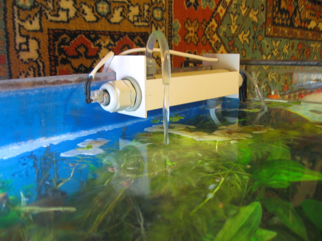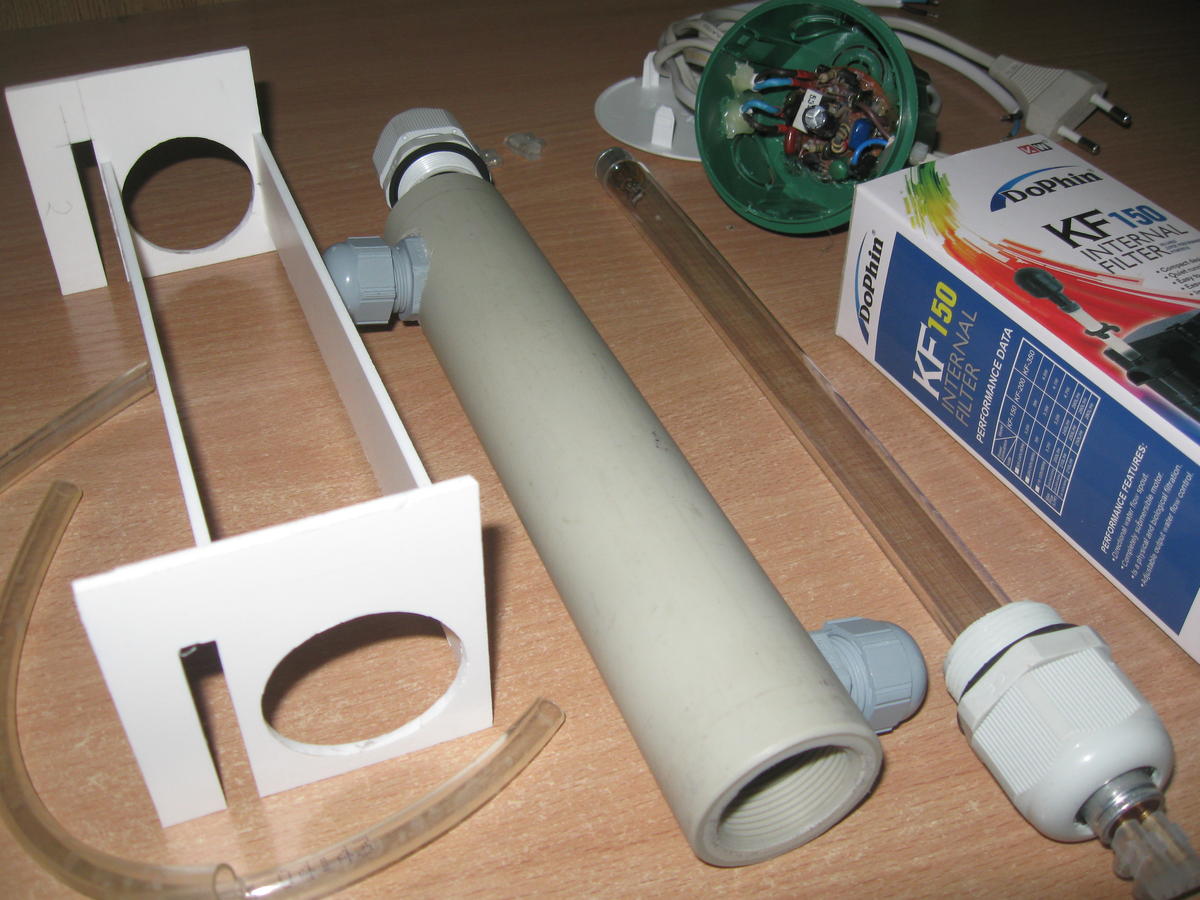 Огромное спасибо автору за идею этого стерилизатора.В борьбе с зеленой водой,после безрезультатного использования перекиси,затемнений и прочих "танцев с бубном" собрал эту установку.Результат отличный в 100л. за 3 суток вода,как слеза)))Постоянно использовать первоначально не планировалось,поэтому делал автономную (на отдельную помпу) и внутрь аквы над водой под крышку.Герметизацией не заморачивался-все внутри аквы,собирал "от руки" без усилий.