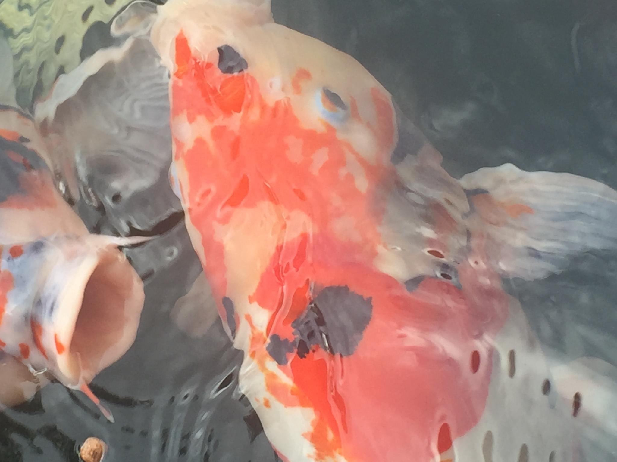 Была прикручена протока , температура стояла на отметке 8-9 несколько дней , после чего рыба поплыла . При 10 градусах , было замечено на четырёх рыбах небольшое ершение чешуи , после 12 градусов было внесено 360 кг соли , это по 3 кг на куб , рыба опять стала по углам ... Простояла день и поплыла . Может соль , может ещё что то на неё так повлияло . За четырьмя рыбами с решением наблюдал с пристрастием !!! Три не вызывали опасений а одна вела себя очень нехорошо , лежала на боку на дне , размер поражения увеличивался ... Температура поднималась , при 12-13 градусах они начали просить еду ! Так как снег сошёл давно , я получил доступ к фильтрам , промыл щётки и маты , решил начать прикармливать ! Уже который год я начинаю с одного из самых лучших в этом вопросе кормов саки Хикари мультисезон , почему ? Потому что он легкоусваиваимый для холодной воды , с пробиотиками , которые помогают запустить иммунную систему кои . Потом можно переходить на любой другой корм , благо выбор кормов и поставщиков есть , просто смотрите сроки и берите в надежном месте , где не нарушаются условия хранения !!!