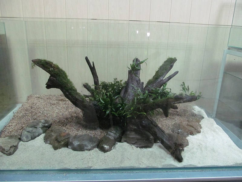 Поверх "живого" грунта поместили слой базальта, чтобы все стало одноцветным, а сверху амазонию, в расчете, что "куба" это оценит