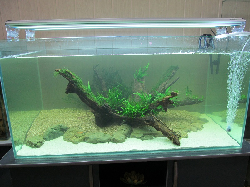 Согласен.Камни маловаты для этого аквариума, но других, к сожалению, нет. Чуть-чуть их можно будет поднять, но существенно ничего не изменится. А пока попробуем вырастить коврик с кубы и постараемся, чтобы он максимально стелилсятся по грунту и не рос в верх. А позже, может и камни побольше появятся и можно будет их потихоньку заменить