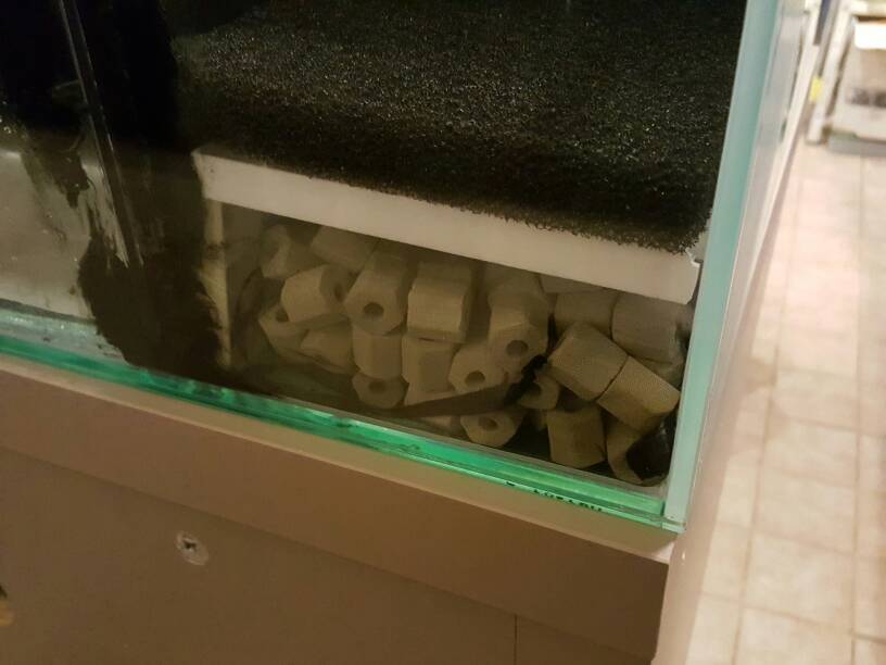 в первом отсеке после носка идет поролон, а дальше камни керамические флювал пред фильт.