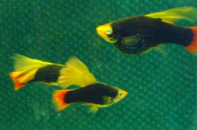 а также-пецилии редиски( красные с черными плавниками и хвостами-редисками)