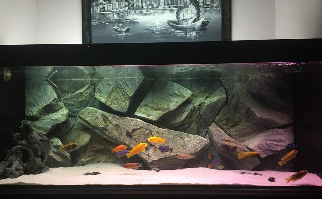 Аквариум живет без воздушного компрессора. Это правда при население 34 рыбы, что не очень плотно для малавийцев. Зато никаких пузырьков в аквариуме и раздражающих шумов, в комнате абсолютная тишина.