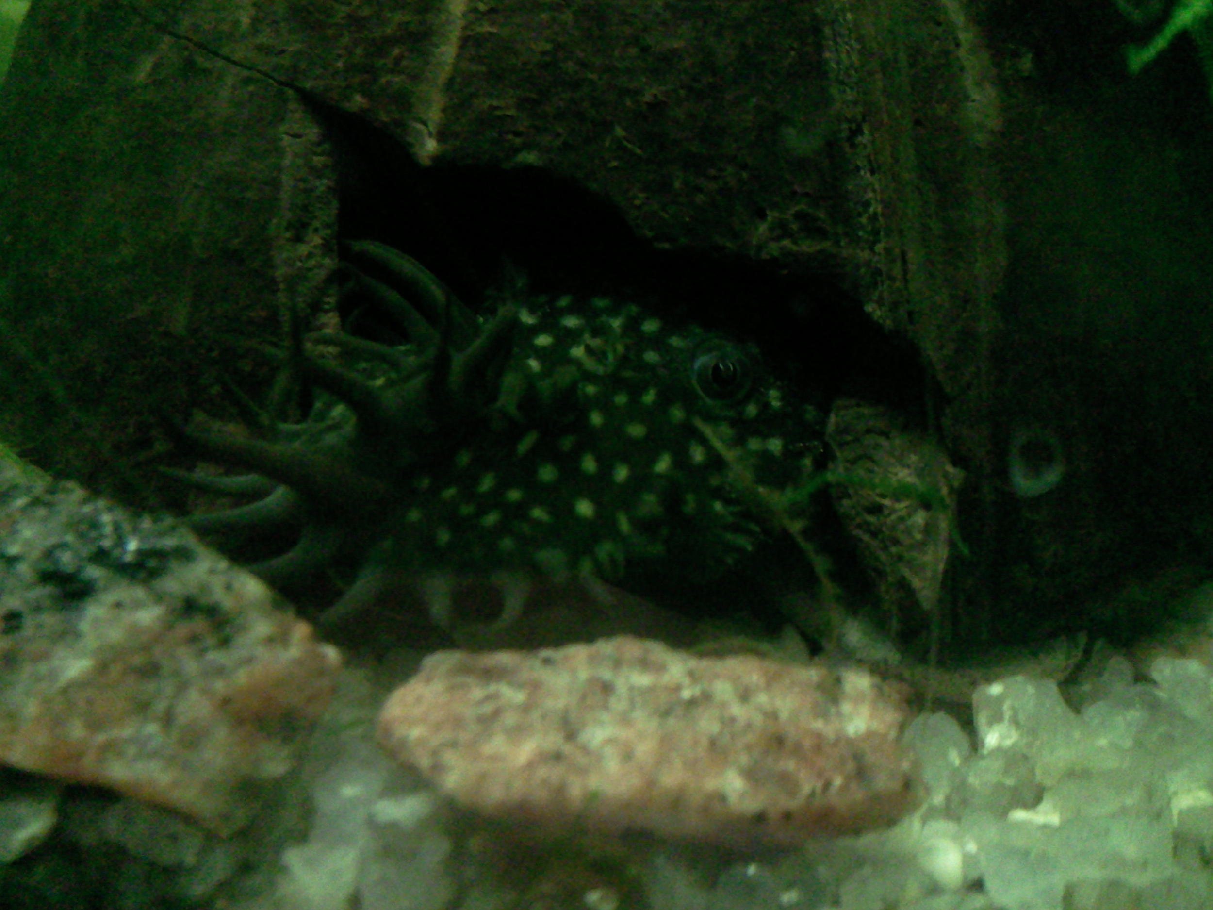 -посему любовников отсадил обратно в общежитие и стал искать икру.Большинство икры оказалось под сеткой,немного на листьях и грелке,уже были побелевшие штук 15-убрал трубкой(