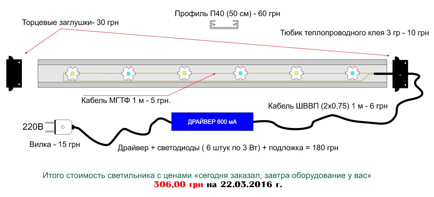 Профиль, кабель, вилку и клей, думаю не проблема найти по цене которую я указал.