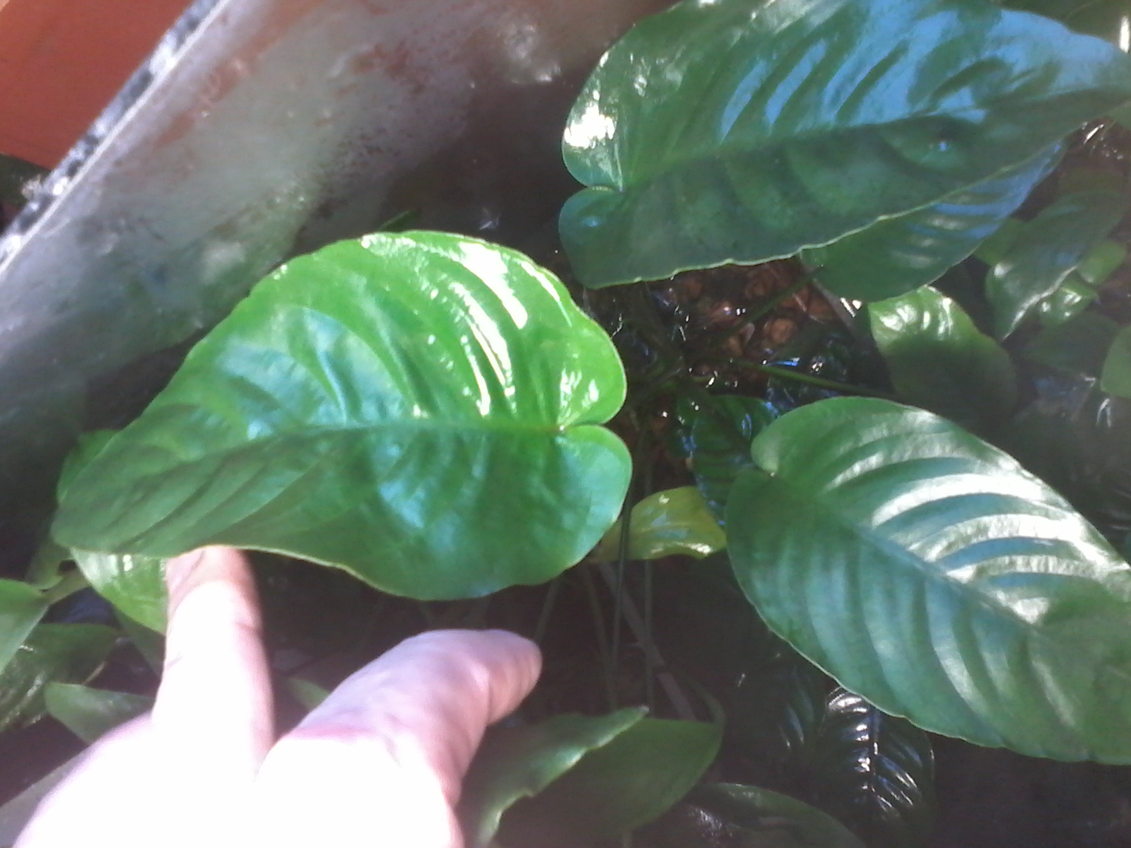 Что это за анубиас? Для Anubias barteri var. caladiifolia,он пожалуй низковат. У предыдущего хозяина он см20-25,у меня 15-20см,кустик ещё молодой. Он рос в одной тепличке с каладифолией(у предыдущего хозяина) и он отличается и формой листа и размером.