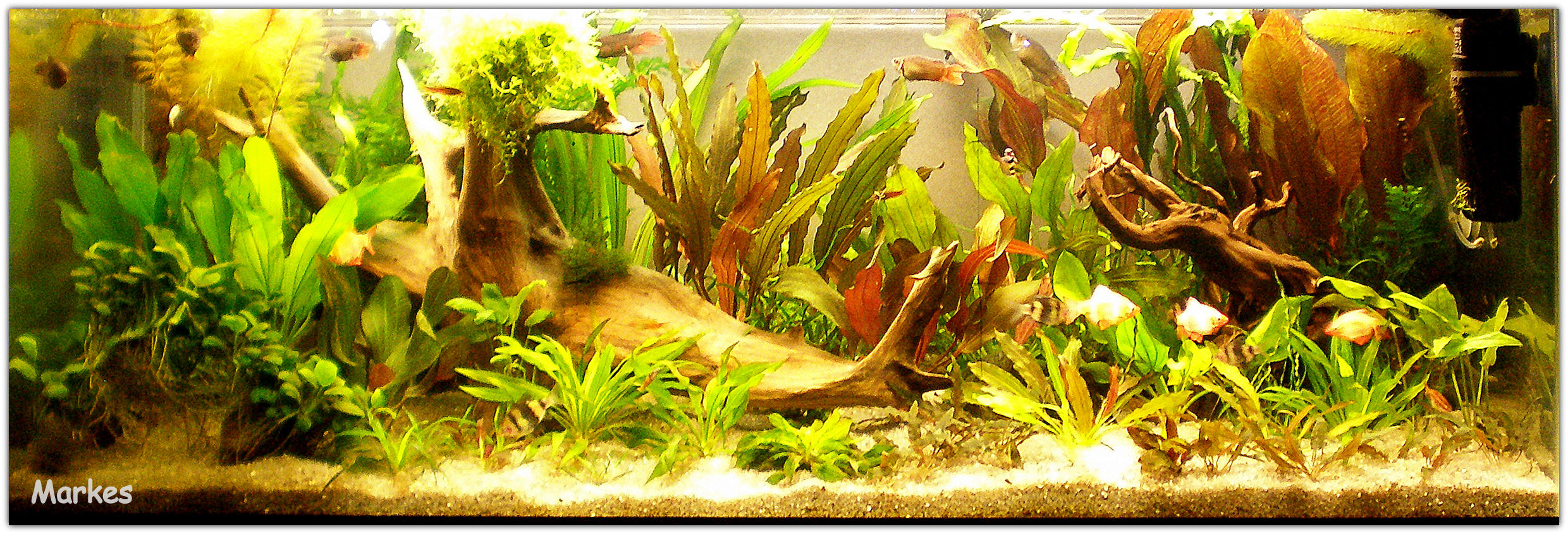 Две фотографии с интервалом в два дня. С одной корягой, и с двумя. На переднем плане справа, полянка "деток" (временно) на раздачу-продажу. Анубиасы слева будут сделаны горкой.