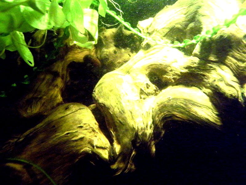 Да, они почти всегда тонут сразу, но и воду красят просто с потрясающей интенсивностью. Кому-то это нравится, но таких мало. Да и для травника – это уже неудобство. Слишком частые подмены быстро вернут с небес на землю. Одну из таких коряг пришлось вымачивать в сливном бачке унитаза несколько месяцев. Мопани сравнительно быстро перестают выделять танины и окрашивать воду, а вот мангровые коряги могут делать это очень долго. Стоит ли овчинка выделки? Каждый решает сам для себя. Хотя от чайного цвета можно избавиться, если пропускать воду через активированный уголь, предварительно размещенный в фильтре. Но в травнике с постоянным внесением удобрений и другой химии это не желательно. Уголь просто все адсорбирует. Скрытый текст
