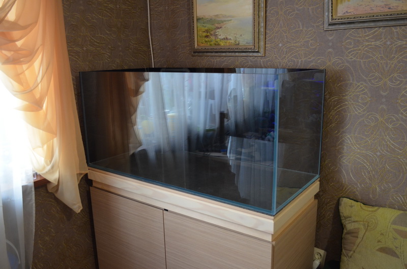 Размеры аквариума 120*45*55 см (высота) с переливной шахтой и гребнем.