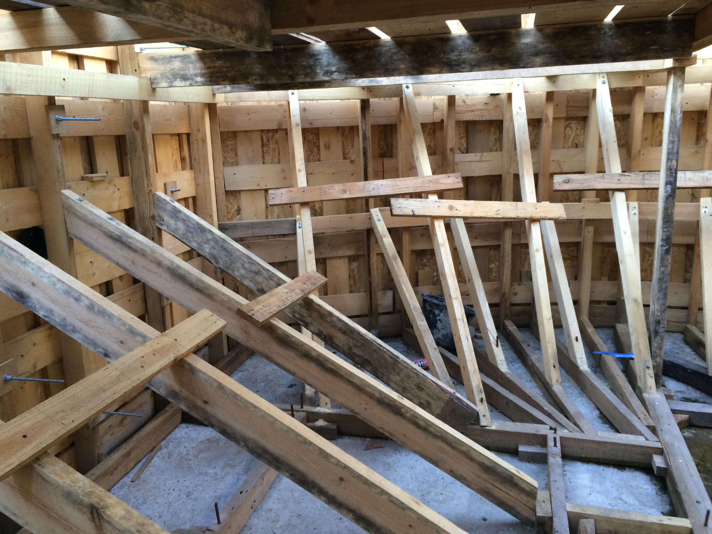 Использовал в качестве внутренних распорок кучу бу некондиционных поддонов