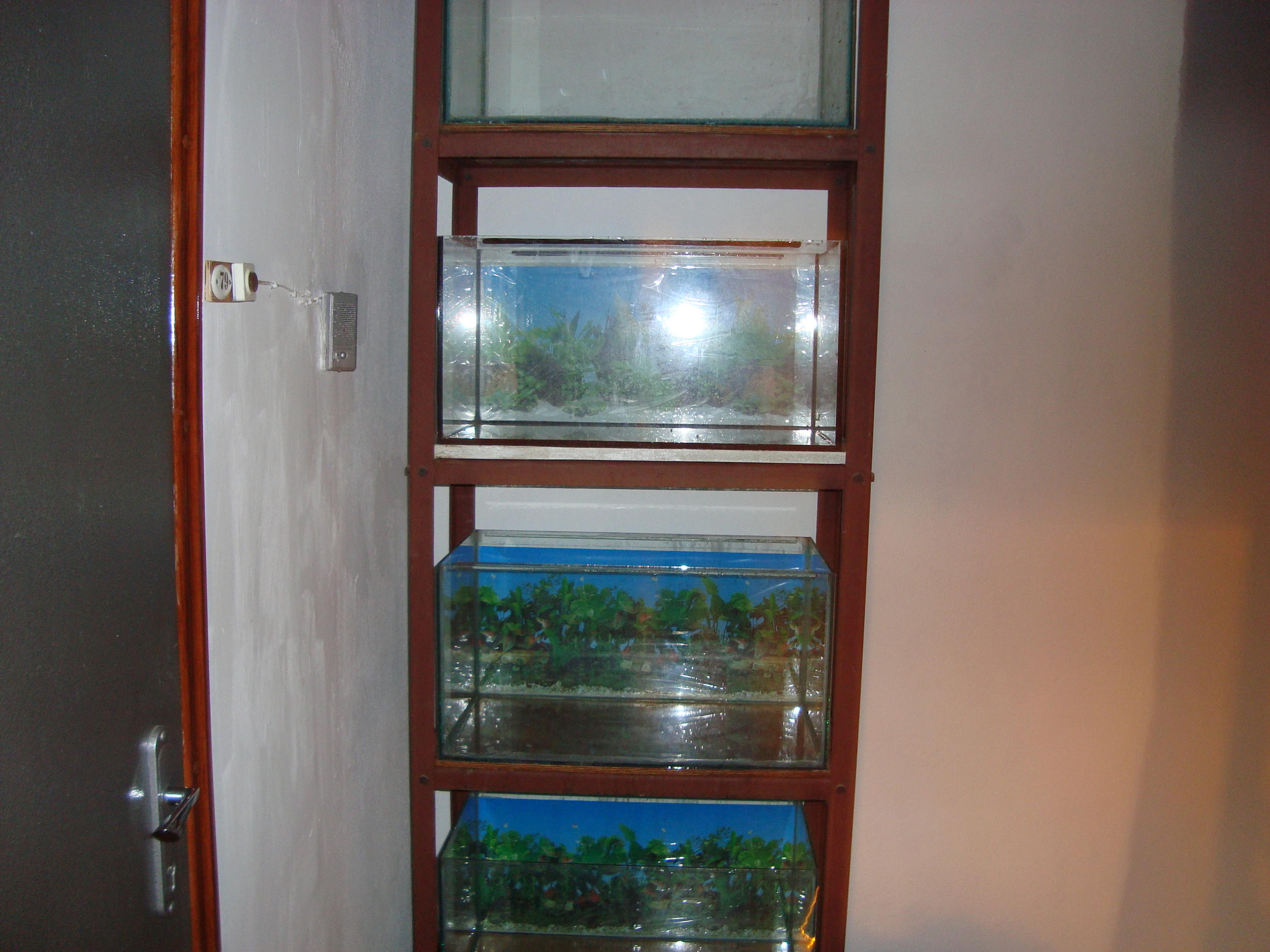 Пришлось (жена против занимания выбранного им места) расформировать один аквариум. Продаю теперь банку.