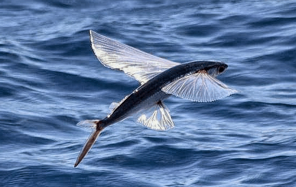 Существует около 40 видов летучих рыб. Рыбка разгоняется под водой и выпрыгивает наверх активно махая хвостом. Большие боковые плавники летучих рыб позволяют им пролетать над водой до 400 метров. Это умение летучие рыбы используют для побега от хищников. Диета летучей рыбы состоит в основном их мелких ракообразных и планктона.