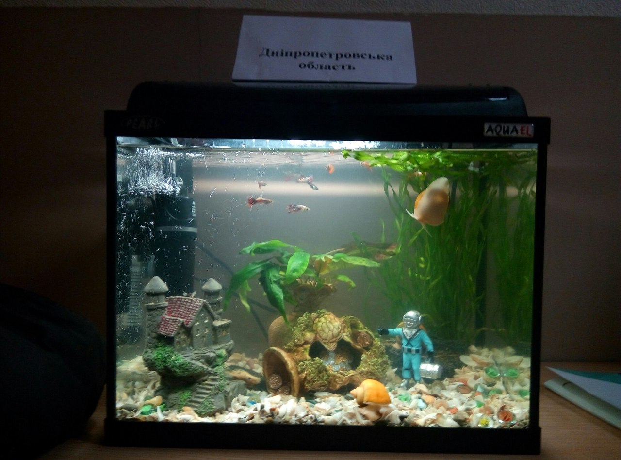 На сегодняшний день в наших аквариумах обитают более 40 видов рыб. Проведено более 12 конкурсов аквариумной тематики,работает кружок аквариумистики, создана общественная организация "Федерация детской аквриумистики г. Николаева". Мы продолжаем развивать аквариумную тематику в нашем городе, обучая девченок и мальчишек такому интересному хобби.