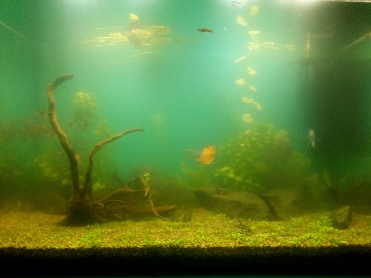 Грунт какой? Подложка есть? Сколько времени от запуска аквариума прошло?