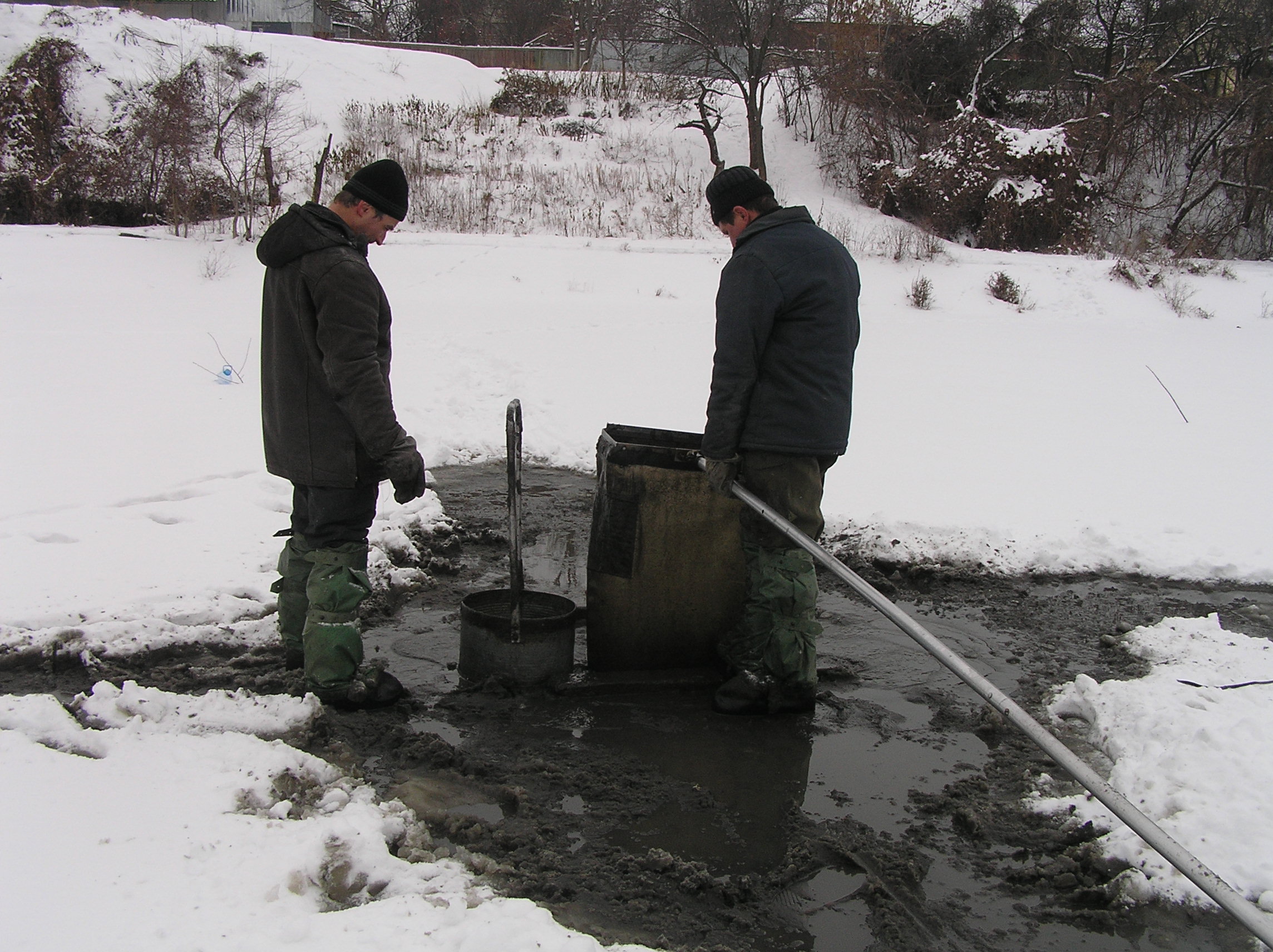 ...Наступила зима.как-то обещал показать,как ловится мотыль у нас.Прекрасно понимаю,что даже подробно описав методы лова мотыля и даже конкретные места,не многие из нас отважатся его ловить.Конечно,высокая цена мотыля может нас подвигнуть на его ловлю.Но из-за небольшого количества его не станешь мараться.А много наловить,например, на продажу,слишком много для этого надо и инструментов-приспособлений, и сил.К тому же, стоять придется в грязи из ила и всякого...Не каждый соберется.Так вот, покажу,как его ловят в одном из водоемов Харькова и окрестностей.Конечно,в другом месте могут применять иные методы или технологии.Также зависит,какой мотыль моется,кормовой или рыбацкий.Если вы соберетесь этим заняться всерьёз,то почитайте нормы и правила вылова этого беспозвоночного.А также нормы на инструмент.Но я-только покажу на фото.Однако, не такой уж и легкий это труд,если попробовать..