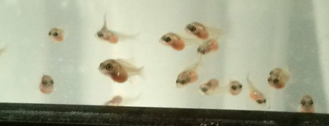 В течении первых суток малёк " расхаживается" и к концу дня- все плавают уверенно. Желточный мешок питает их первые сутки. На следующие- я начинаю кормить их науплией, которую ставлю заранее на инкубацию.